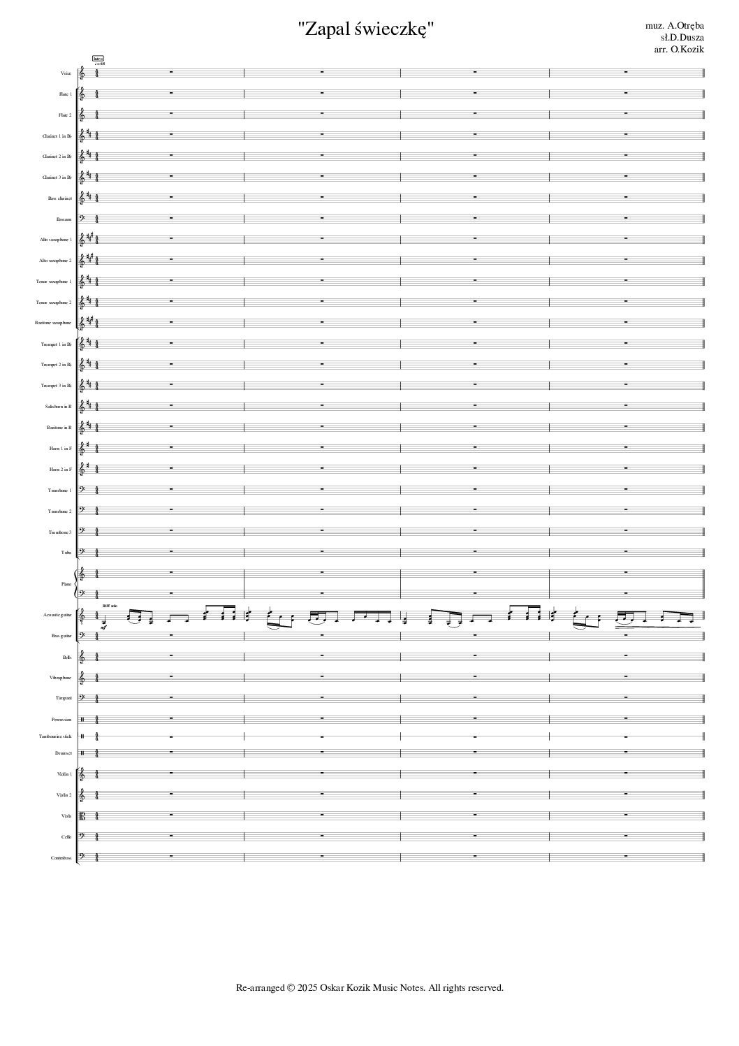 Opracowanie na koncert band, smyczki, orkiestrę dętą z wokalem.