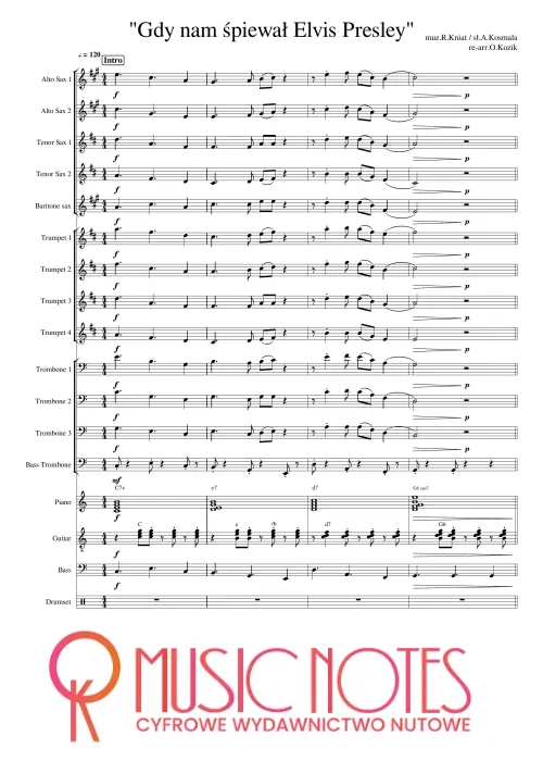 Aranżacja utworu „Gdy nam śpiewał Elvis Presley” w wersji PDF. Nuty na zespół wokalno-instrumentalny – retro klimat i sentymentalna opowieść.