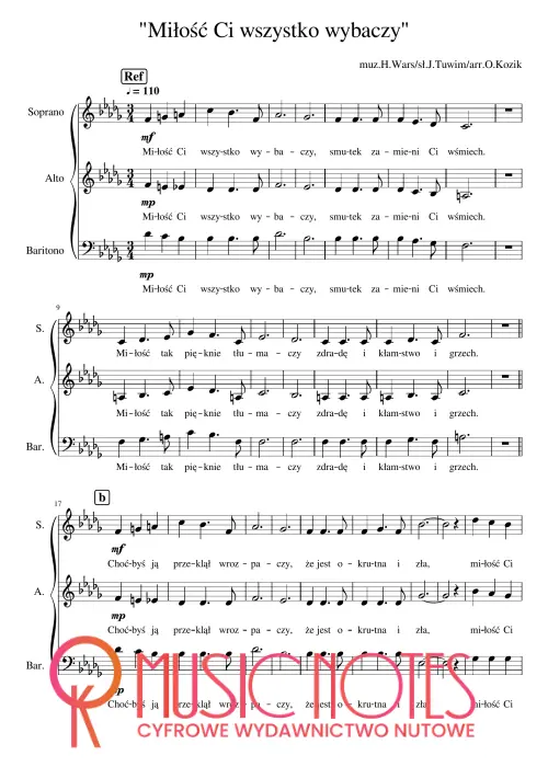 Aranżacja utworu Hanki Ordonówny „Miłość Ci wszystko wybaczy” w wersji PDF. Nuty na orkiestrę – sentymentalny nastrój i urokliwe brzmienie, doskonałe na koncerty retro i wieczory z piosenką przedwojenną.