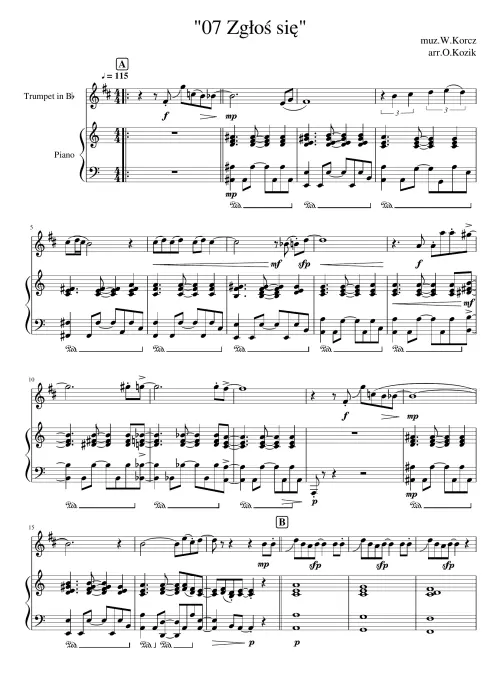 Aranżacja motywu z serialu „07 Zgłoś się” na trąbkę i fortepian w wersji PDF. Nuty na orkiestrę – dynamiczny klimat i kryminalne brzmienie, świetne na koncerty telewizyjne i detektywistyczne wieczory.