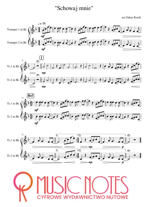 Aranżacja utworu „Schowaj mnie” na trąbkę w wersji PDF. Nuty na orkiestrę – sakralny klimat i medytacyjne brzmienie, idealne na uroczystości religijne i koncerty refleksyjne.