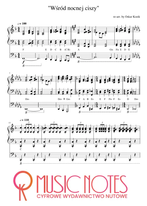 Aranżacja kolędy „Wśród nocnej ciszy” w wersji PDF. Nuty na orkiestrę – intymny klimat i przestrzenne brzmienie, świetne na Pasterki i koncerty bożonarodzeniowe.
