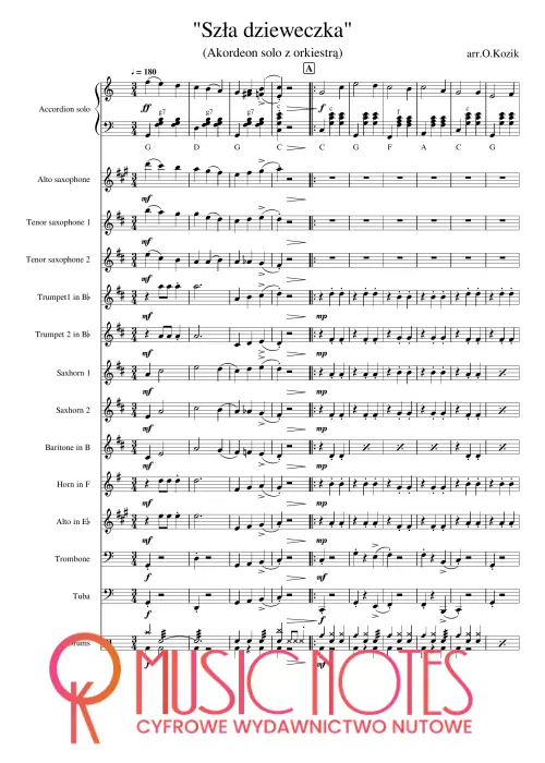 Aranżacja ludowego utworu „Szła dzieweczka” na akordeon solo. Nuty PDF do pobrania – prosta, melodyjna forma idealna na występy regionalne.