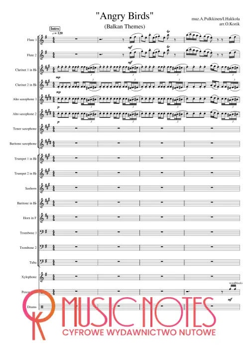 Aranżacja motywu z gry „Angry Birds” w wersji PDF. Nuty na orkiestrę dętą i perkusję. Dynamiczna propozycja na koncerty młodzieżowe.