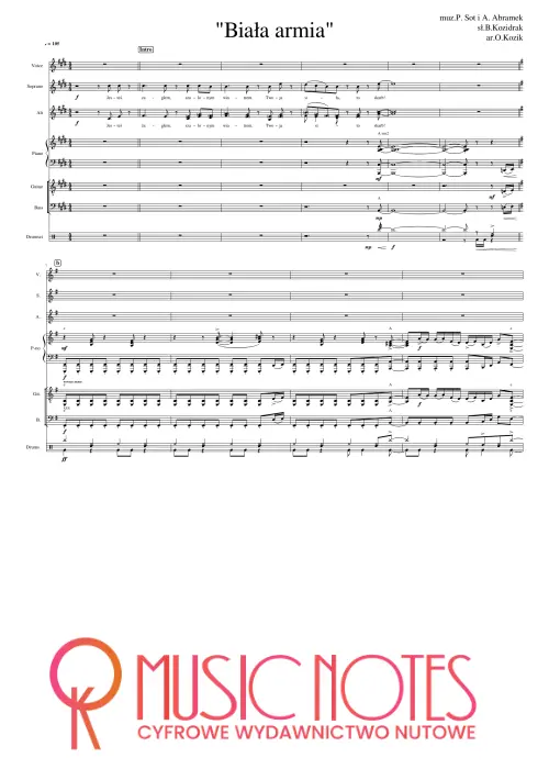 Alternatywna wersja aranżacji „Biała armia” w PDF. Nuty na zespół instrumentalny – dynamiczne brzmienie, świetne na koncerty plenerowe.