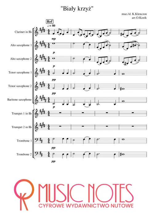 Aranżacja „Biały krzyż” w wersji PDF. Nuty na chór i orkiestrę – wzruszająca pieśń pamięci, idealna na obchody rocznicowe i patriotyczne.