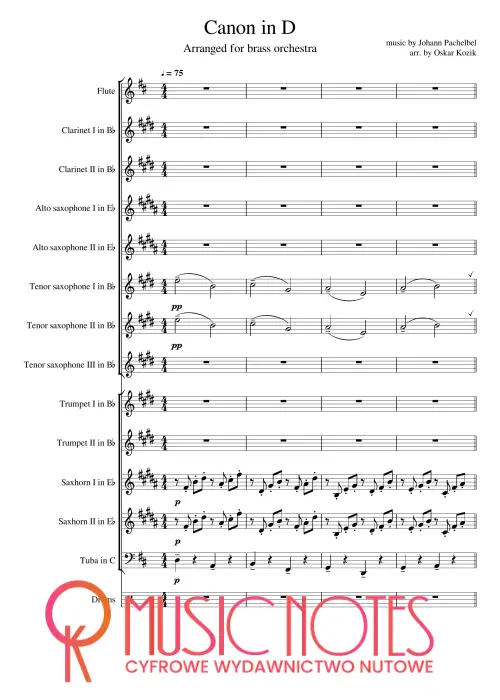 Aranżacja „Canon in D” Pachelbela w wersji PDF. Nuty na kwartet smyczkowy i organy – klasyczne brzmienie, doskonałe na śluby i uroczystości sakralne.