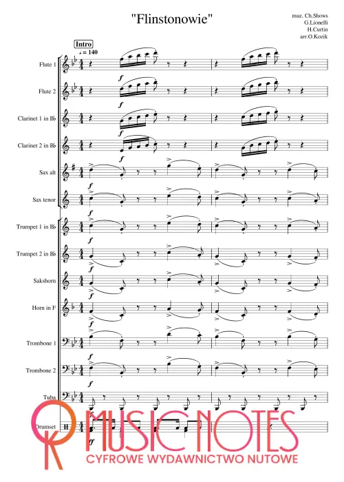 Aranżacja motywu z bajki „Flinstonowie” w wersji PDF. Nuty na orkiestrę – humorystyczny klimat i retro brzmienie, idealne na występy rodzinne.