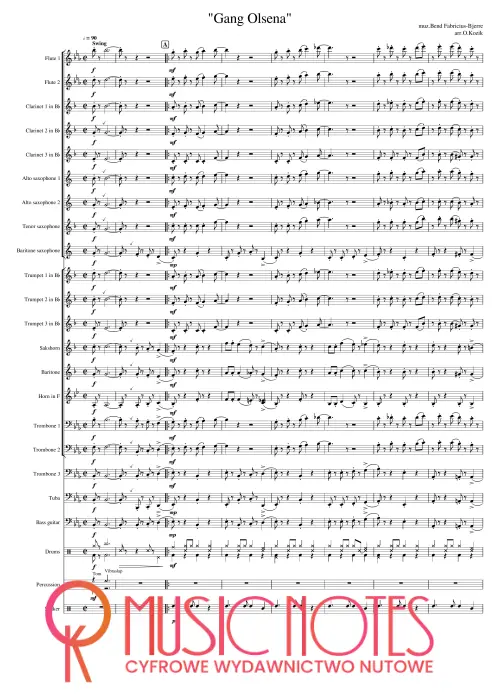 Aranżacja motywu z filmu „Gang Olsena” w wersji PDF. Nuty na orkiestrę – humorystyczny klimat i retro brzmienie, idealne na koncerty tematyczne.