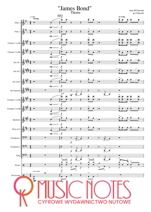 Aranżacja motywu z filmu „James Bond” w wersji PDF. Nuty na orkiestrę – dynamiczny klimat i pełne napięcia brzmienie, idealne na koncerty filmowe.