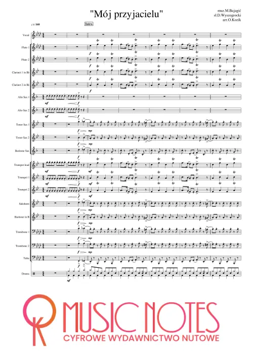 Aranżacja utworu „Mój przyjacielu” w tonacji a-moll w wersji PDF na zespół. Nuty – ciepły klimat i wzruszające brzmienie, doskonałe na koncerty kameralne i tematyczne.