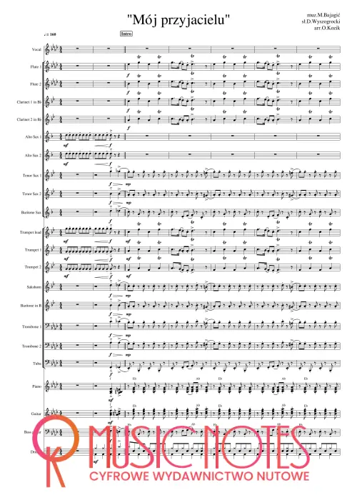 Aranżacja utworu „Mój przyjacielu” w wersji PDF na zespół. Nuty – łagodny nastrój i harmonijne brzmienie, świetne na występy akustyczne i kabaretowe.