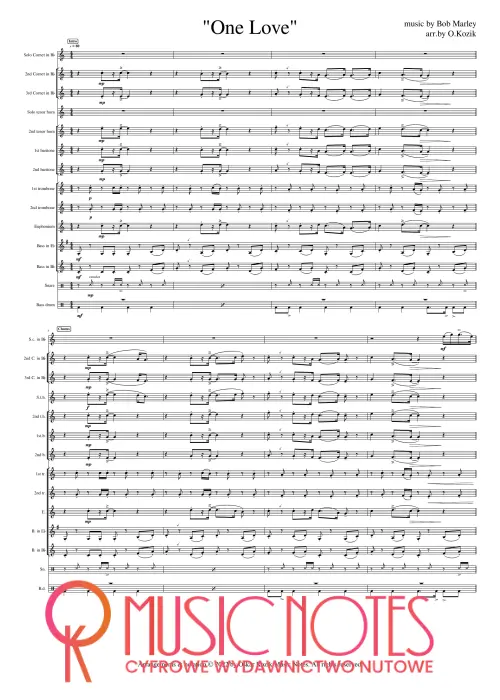 Aranżacja utworu Boba Marleya „One Love” w wersji PDF. Nuty na orkiestrę – reggae’owy nastrój i pozytywne brzmienie, doskonałe na koncerty letnie i festiwale muzyczne.