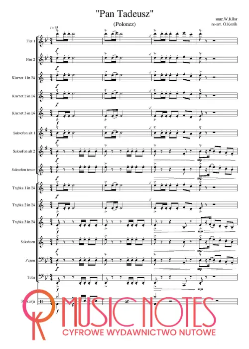 Aranżacja motywu Wojciecha Kilara z filmu „Pan Tadeusz” w wersji PDF. Nuty na orkiestrę – podniosły klimat i klasyczne brzmienie, doskonałe na koncerty literackie i wydarzenia kulturalne.