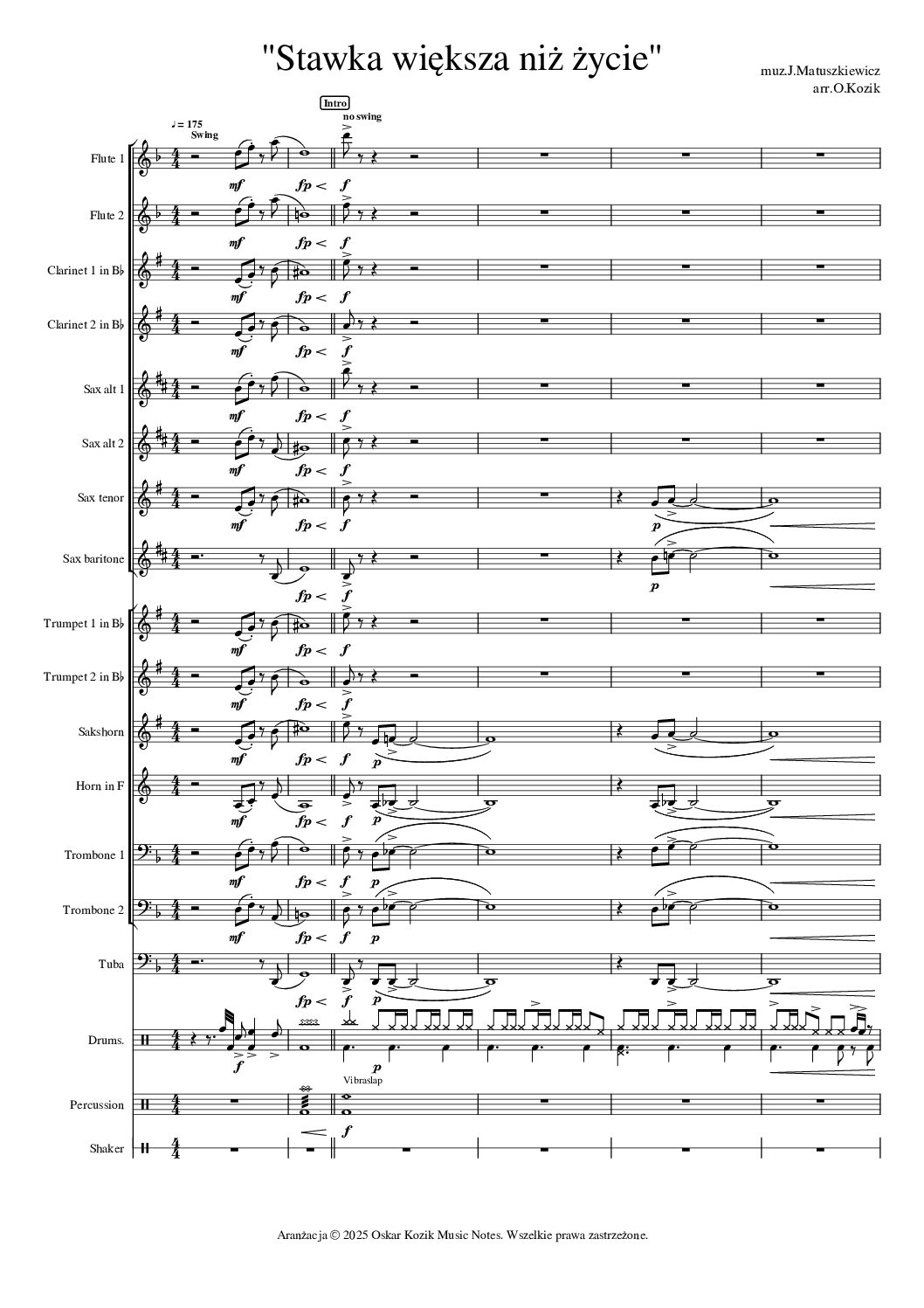 Aranżacja motywu z serialu „Stawka większa niż życie” w wersji PDF. Nuty na orkiestrę – dramatyczny nastrój i filmowe brzmienie, idealne na koncerty z muzyką retro i tematyczne występy.