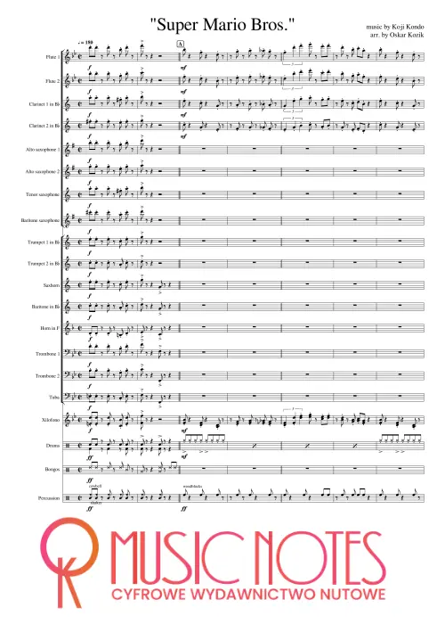 Aranżacja muzyki z gry „Super Mario Bros” w wersji PDF. Nuty na orkiestrę – radosny klimat i nostalgiczne brzmienie, świetne na koncerty popkulturowe i rodzinne wydarzenia.