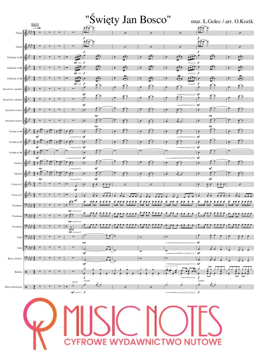 Aranżacja utworu „Święty Jan Bosco” w wersji PDF. Nuty na orkiestrę – podniosły klimat i religijne brzmienie, idealne na koncerty chóralne i wydarzenia sakralne.