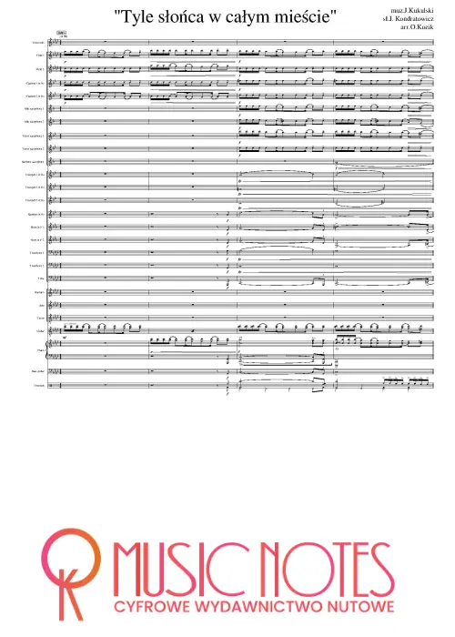 Aranżacja przeboju „Tyle słońca w całym mieście” w wersji PDF. Nuty na orkiestrę – słoneczny klimat i pozytywne brzmienie, doskonałe na koncerty letnie i wydarzenia plenerowe.