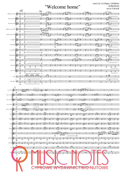 Aranżacja utworu „Welcome home” w wersji PDF. Nuty na orkiestrę – domowy klimat i spokojne brzmienie, świetne na koncerty kameralne i ciepłe wydarzenia rodzinne.