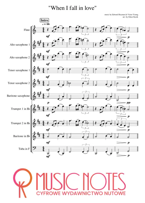 Aranżacja ballady „When I Fall in Love” w wersji PDF. Nuty na orkiestrę – romantyczny nastrój i aksamitne brzmienie, doskonałe na koncerty walentynkowe i wieczory z klasyką.