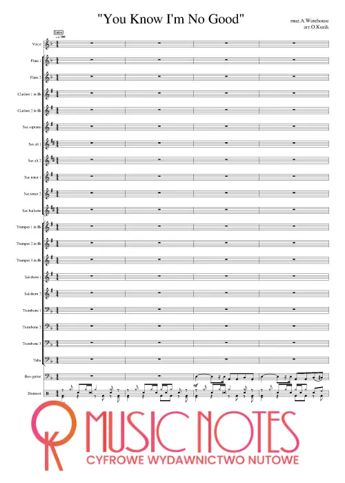 Aranżacja utworu Amy Winehouse „You Know I’m No Good” w wersji PDF. Nuty na orkiestrę – melancholijny klimat i soulowe brzmienie, doskonałe na koncerty jazzowe i sesje tematyczne.