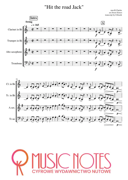 Aranżacja „Hit the Road Jack” w wersji Sweet Sisters na sekcję dętą jako akompaniament pod wokal. Nuty PDF – swingowy styl i sceniczna energia, świetne na występy tematyczne.