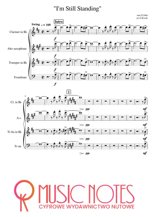 Aranżacja „I’m Still Standing” na sekcję dętą jako akompaniament pod wokal. Nuty PDF – popowy hit z mocnym rytmem, idealny na koncerty młodzieżowe.