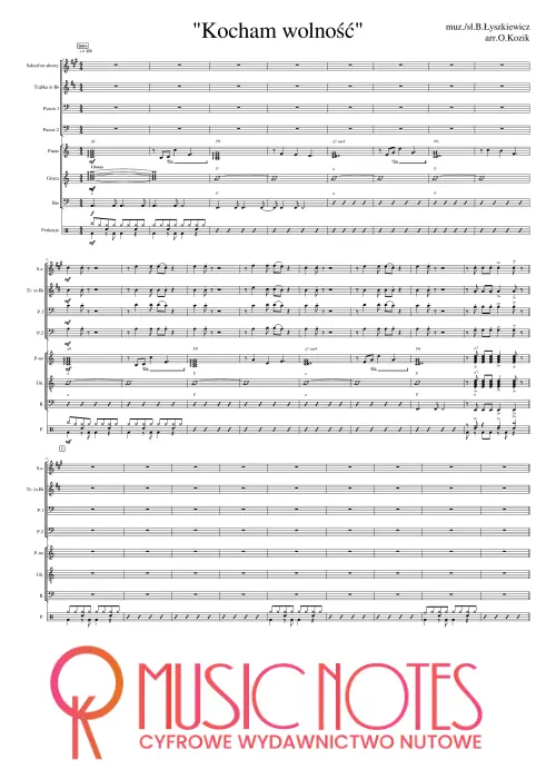 Aranżacja utworu „Kocham wolność” w wersji PDF. Nuty na band, sekcję dętą z wokalem – inspirujące brzmienie, świetne na uroczystości i koncerty tematyczne.