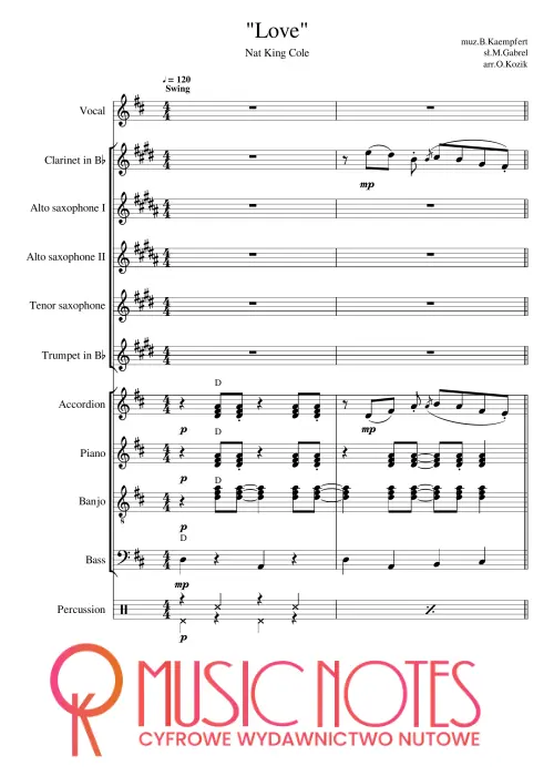 Aranżacja utworu „Love” Nat King Cole’a w wersji PDF. Nuty na zespół kameralny, retro – romantyczny nastrój i ciepłe brzmienie, doskonałe na koncerty walentynkowe i tematyczne.