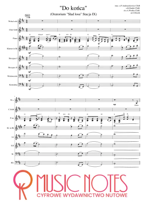 Aranżacja części „Do końca” z oratorium „Ślad losu” w wersji PDF. Nuty na zespół kameralny, chórek i wokal – kontemplacyjny nastrój i atmosferyczne brzmienie, idealne na koncerty medytacyjne i refleksyjne.