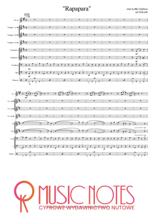 Aranżacja utworu „Rapapara” w wersji PDF. Nuty na małą orkiestrę – humorystyczny nastrój i energetyczne brzmienie, idealne na koncerty kabaretowe i rozrywkowe występy.